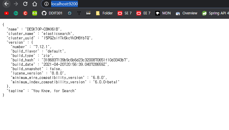 9200 포트가 http 로 바인딩 됩니다. 잘 접속이 되는 것을 확인 할 수 있습니다.