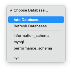 왼쪽 상단 choose Database 버튼을 누르고 데이터 베이스를 추가할 수 있습니다.
