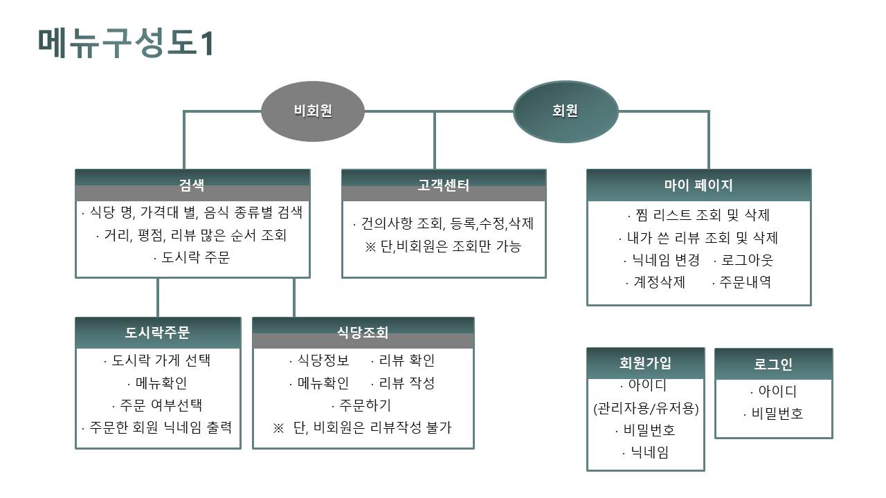 마이페이지에서는 찜리스트, 나의 도시락 주문 내역, 내의 리뷰 내역 등을 조회 할 수 있습니다.